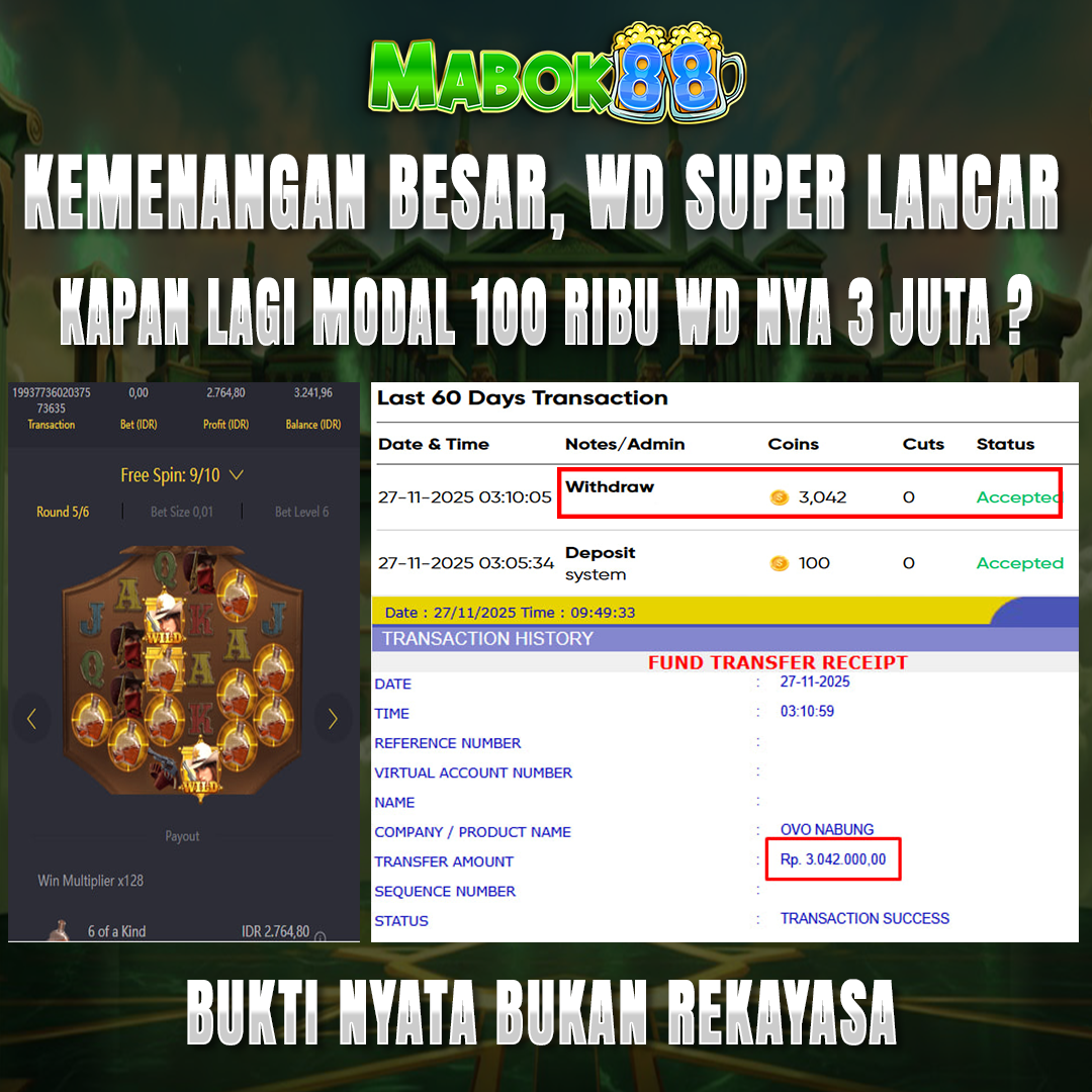 SURGAWIN288 menghadirkan game jackpot vip yang di lengkapi fitur khusus new member hanya dengan modal deposit 100k dijamin akan withdraw 3+ juta malam ini.